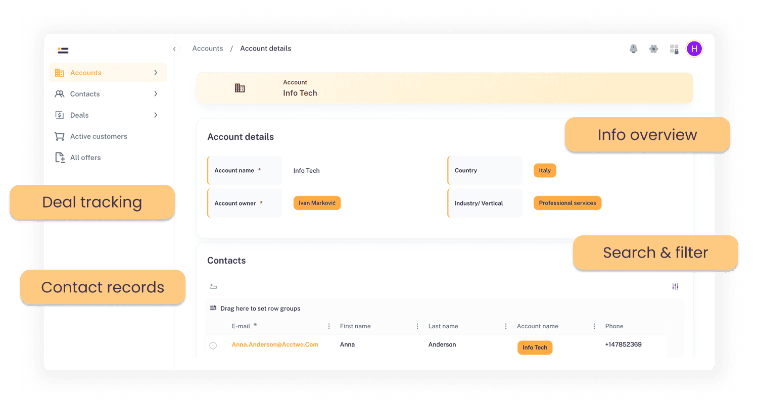 Replace scattered spreadsheets, notes, and email threads with a simple application that helps teams track customers and sales opportunities.